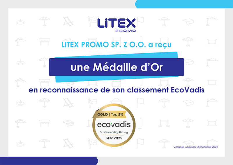 C’est avec une immense satisfaction que nous vous informons que Litex Promo sp. z o.o. a obtenu la Médaille d’Or EcoVadis.
