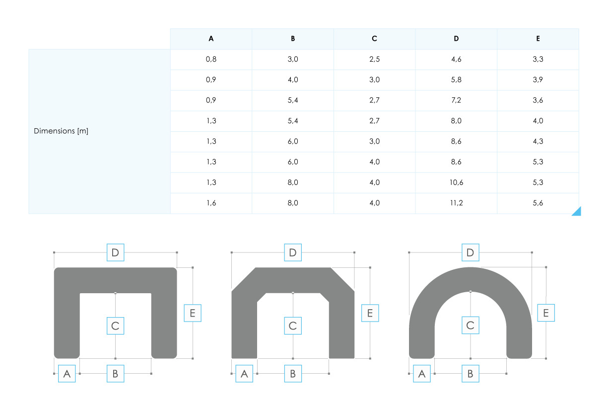 L’offre comprend 3 variantes de formes – rectangle, polygone et arche. Chaque arche publicitaire gonflable peut également être équipée de pieds stabilisateurs pratiques, qui améliorent la stabilité de la structure et réduisent le risque de renversement même par vents forts. L’arche publicitaire gonflable AirFlow est proposée en dimensions standard allant de 3,0 m à 8,0 m, permettant un ajustement facile à différents espaces. Sur demande, il est également possible de réaliser un projet sur mesure.