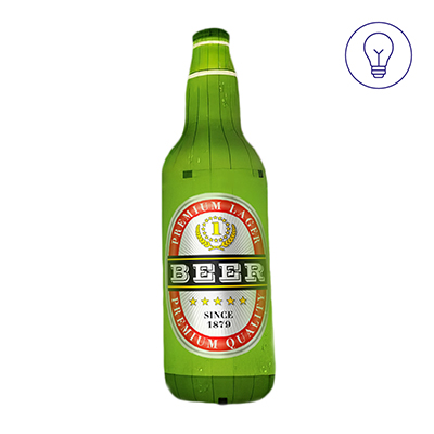 La bouteille gonflable publicitaire peut être équipée en supplément d’une base en bois, qui augmente sa stabilité et sa sécurité, minimisant ainsi le risque de renversement ou de dommages pendant l’exposition. Grâce à un éclairage LED interne optionnel, le message publicitaire reste également visible 24h/24 et 7j/7.