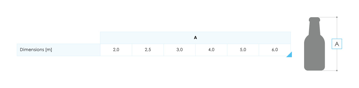 Hauteur disponible:2 m, 2,5 m, 3 m, 4 m, 5 m, 6 m