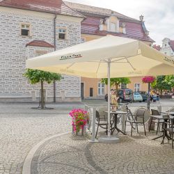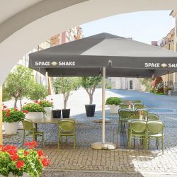 Le parasol publicitaire imprimé Classic Line de 4 m de large est disponible en version ronde ou carrée. Son système d’ouverture et de fermeture simple garantit un confort d’utilisation maximal