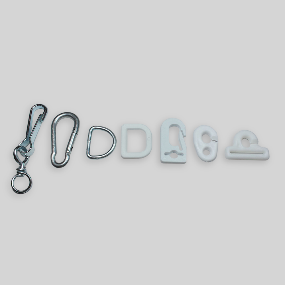 Finitions populaires – Drapeau horizontal:Corde, nœud, Fourreau sur le mât, Mousquetons, Œillets
