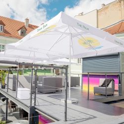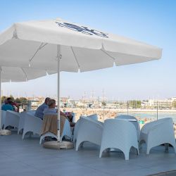 Easy Up est une gamme de parasols dotés d’un système d’ouverture pratique et intuitif. Il suffit de pousser la poignée spéciale vers le haut et de fixer l’auvent. Grâce à ce système simple et au large éventail de tailles disponibles, les parasols de cette ligne sont parfaits pour le jardin ou la terrasse de l’hôtel, ainsi que pour la brasserie. Proposé en forme ronde ou carrée, l’auvent de parasol sera le support promotionnel parfait pour votre marque.