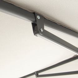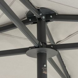 Le mécanisme de pliage et de dépliage, parfaitement adapté, rend le parasol facile à manipuler et pratique à transporter. Le mât en deux parties facilite le transport et le stockage (par exemple, hors saison).
