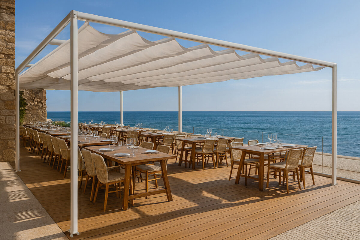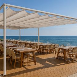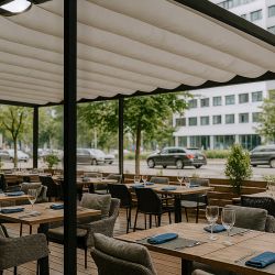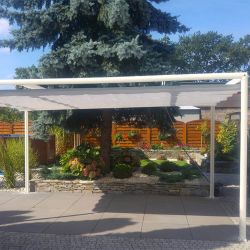 La pergola en aluminium Standard est une protection simple et fonctionnelle contre le soleil. La structure est construite à partir de profilés en aluminium légers et résistants. Le toit ouvrant de la pergola de type romain est réalisé dans une toile acrylique très résistante utilisée pour les marquises. Le système permet d’installer la structure sur la façade d’un bâtiment ou comme un auvent autonome. La pergola en aluminium est idéale comme auvent pour les structures en bois existantes.