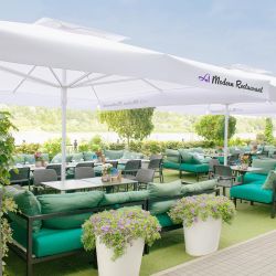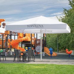 Vous souhaitez aménager un jardin de restaurant élégant ? Choisissez vous-même le graphisme de vos parasols. Il peut s’agir du logo, du nom de l’entreprise ou de graphiques décoratifs qui impressionneront positivement les clients et les visiteurs.